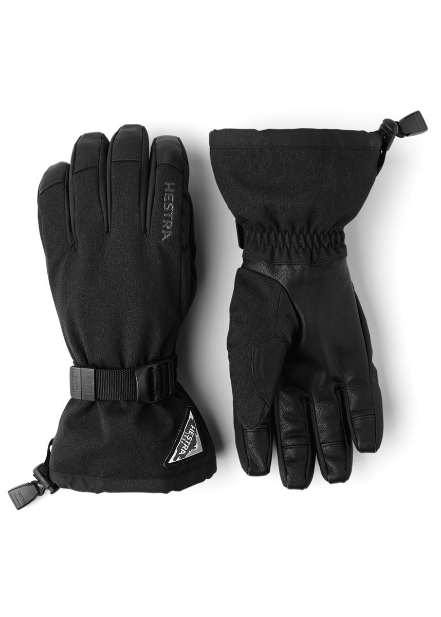 The Men's Powder Gauntlet 5 Finger Glove from Hestra is a longer glove for skiing and snowboarding. The glove is made of windproof, waterproof and breathable HESTRA Niak fabric with a palm made of impregnated goat leather. Finished with a removable soft fleece lining and fiberfill insulation, your hands will stay dry, warm and comfortable.