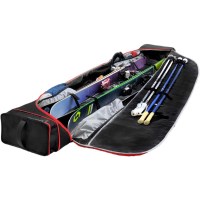 Looking for a ski bag that can handle super-sized travel? Look no further than our top-of-the-line wheeled ski bag. Designed by expert travel skiers, this bag can hold up to 2 sets of skis, poles, apparel, and accessories, making it the main bag you need for your next ski adventure. Built to last, this bag is crafted from premium materials with impeccable workmanship and attention to detail. It features high-durability PVC-free tarpaulin at high-risk areas, hidden backing reinforcements for strength, corner bumpers to protect against rough handling, and the best zippers, buckles, and fabrics on the market. And, of course, it's loaded with functional features like easy-access compartments and sturdy wheels for effortless travel. So why settle for less when you can trust your gear to the best?