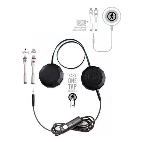 These are the Wired Chips Adaptable, the universal wired helmet audio system by Outdoor Tech®. Now with 3.5 to USB C and 3.5 to Lightning adapters! Connect them to your device, drop them into your audio compatible helmet and your skull will be dripping with undeniable melodies for almost the next ten hours. Loaded with full audio controls, phone call capability, and voice command (Siri) power. Do it all while keeping your mittens where they belong ... waving in the air, like you just don’t care. Imagine it: warm hands, fresh powder, total audio and communication control.