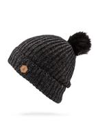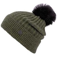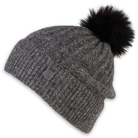 Ribbed watch cap style, with enough height to slouch, faux fur pom is removable