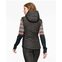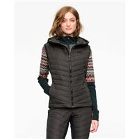 The Kari Traa Eva Down Vest is a lightweight, water-repellent, super-insulated sleeveless, hooded women’s down jacket for warmth in the Nordic outdoors. There won’t be any cold spots: the powerful down fill stays in place and doesn’t leak out. The slim cut and thin diagonal lines of compact quilting make it ideal for layering, while the fixed hood shuts out the cold. Super-mobile stretch fabric on the sides stop slippage.